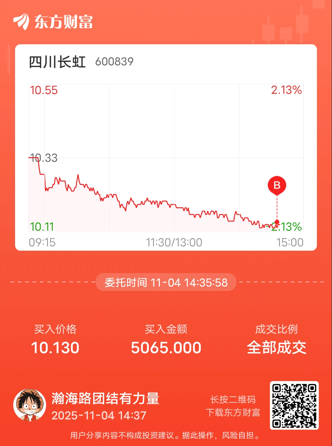 委托标的:四川长虹买卖方向:买笔记:技术分析