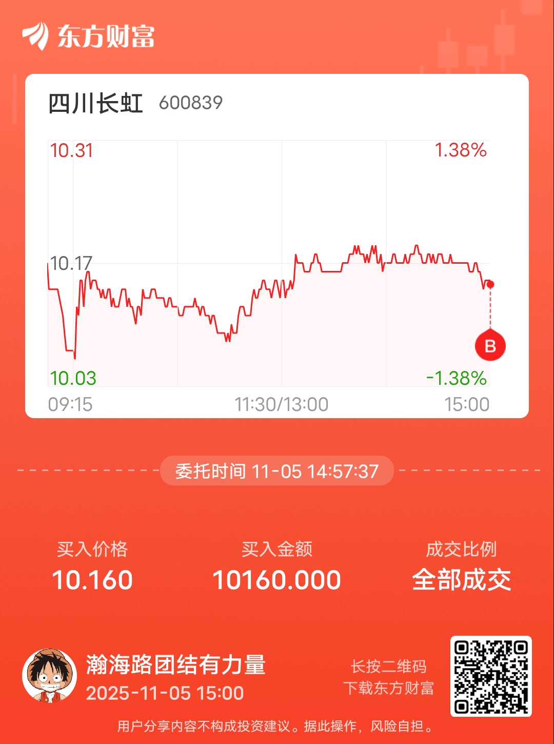 委托标的:四川长虹买卖方向:买笔记:技术分析