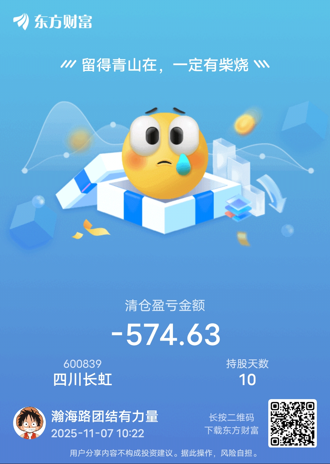 $四川长虹(SH600839)$ 看见下边的拖单心拔凉拔凉的,走了