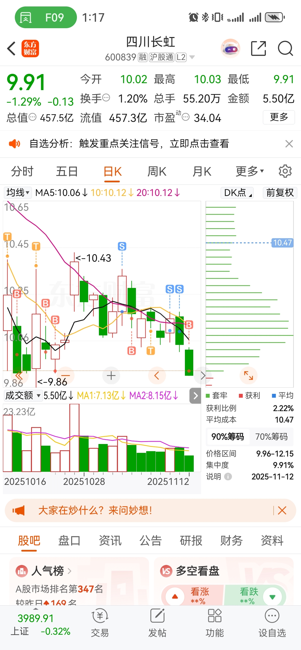 $四川长虹(SH600839)$ 亏太多了,又买回来,还是亏