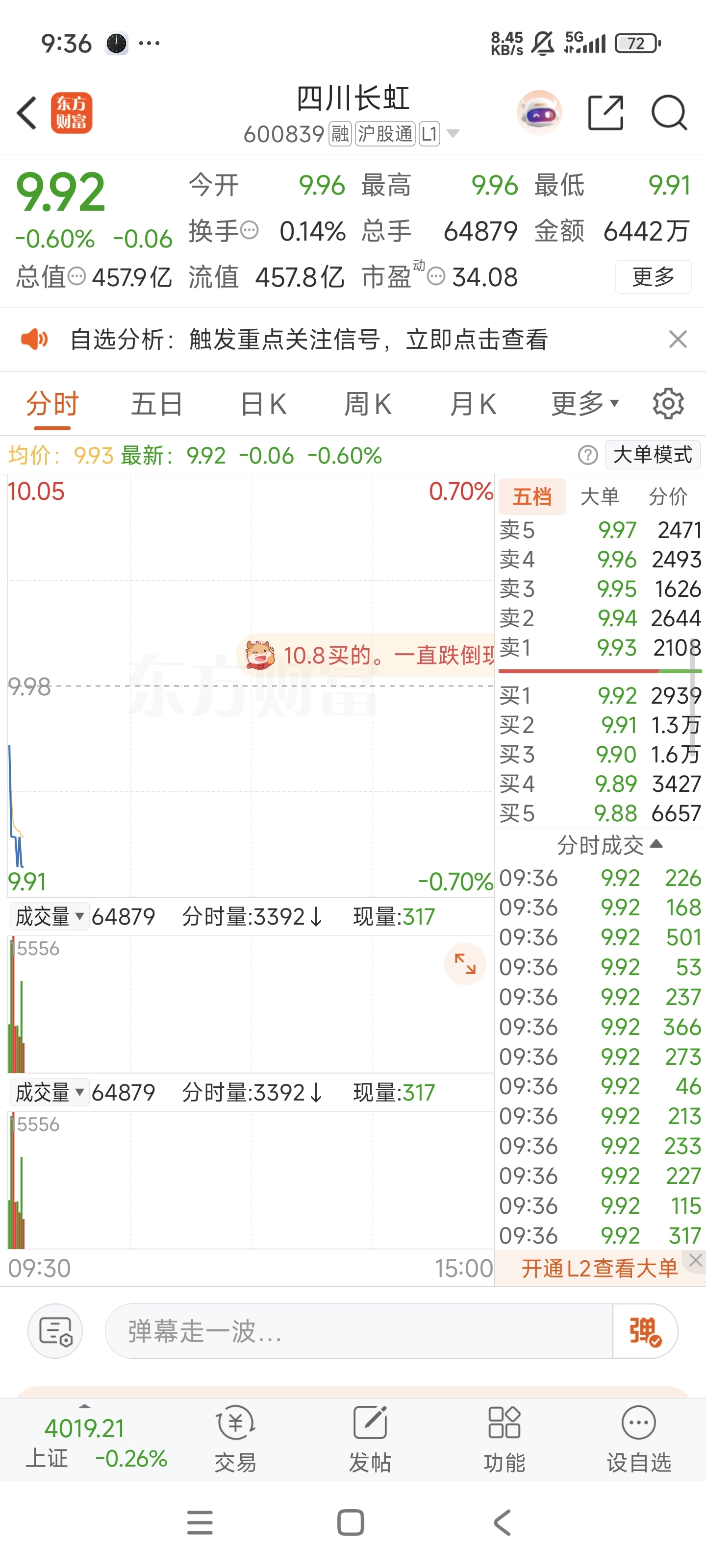$四川长虹(SH600839)$ 清一色的卖单,厉害