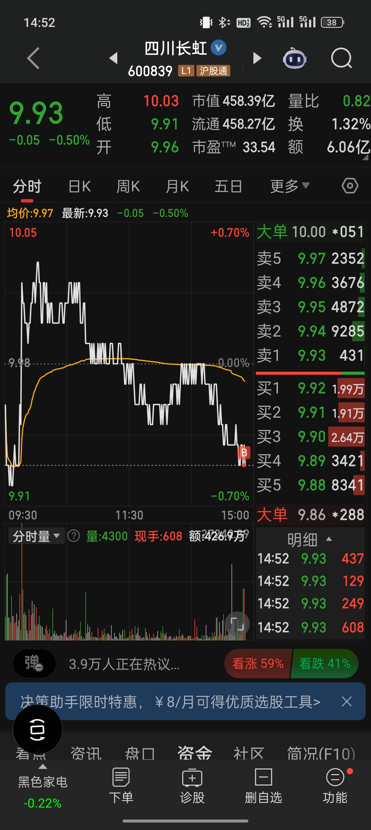 $四川长虹(SH600839)$ 继续加仓,根本不慌