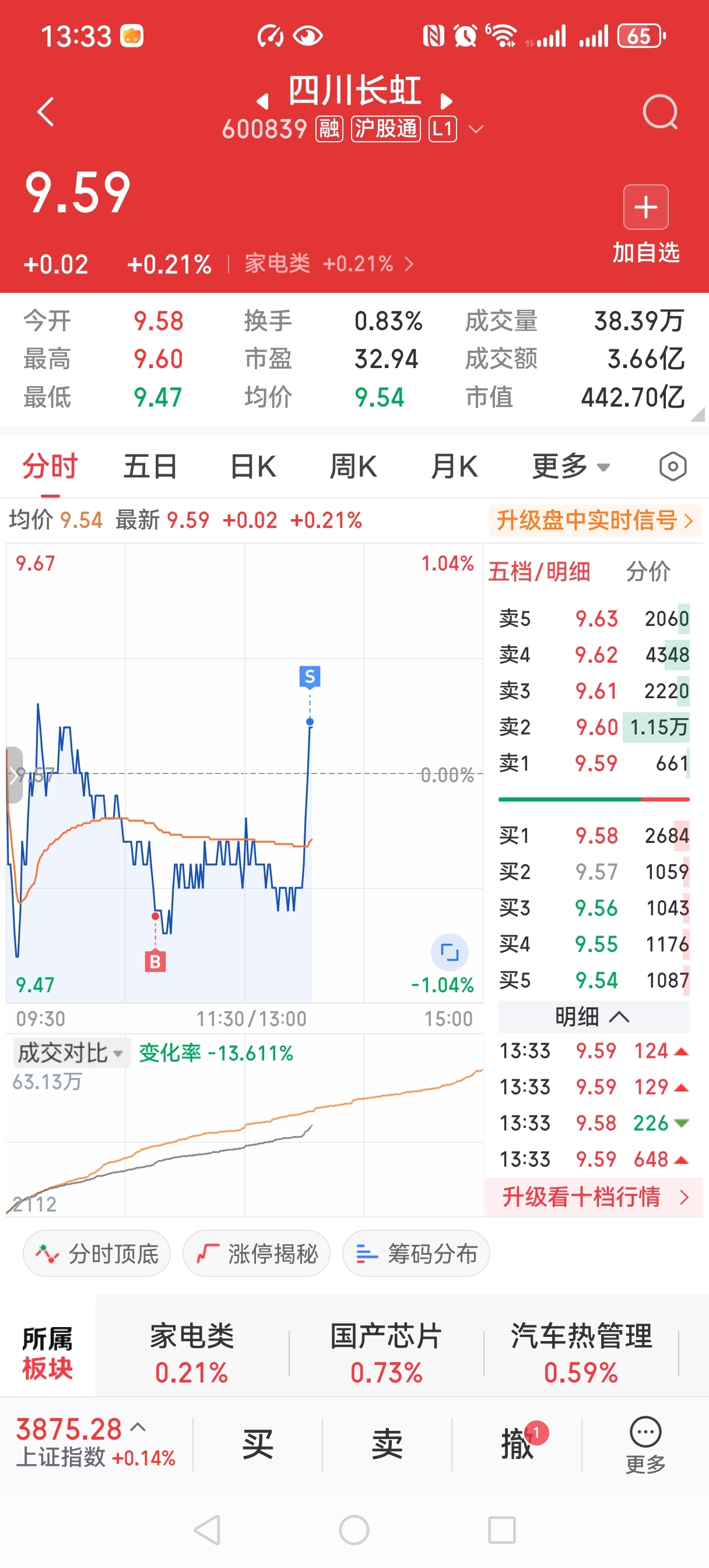$四川长虹(SH600839)$ 天天能做T的股票就是好股票,本日低吸,反弹后卖出,仍持有底仓20000股,坚持必大阳!