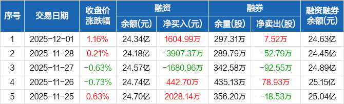 四川长虹:融资净买入1604.99万元,融资余额24.34亿元(12-01)