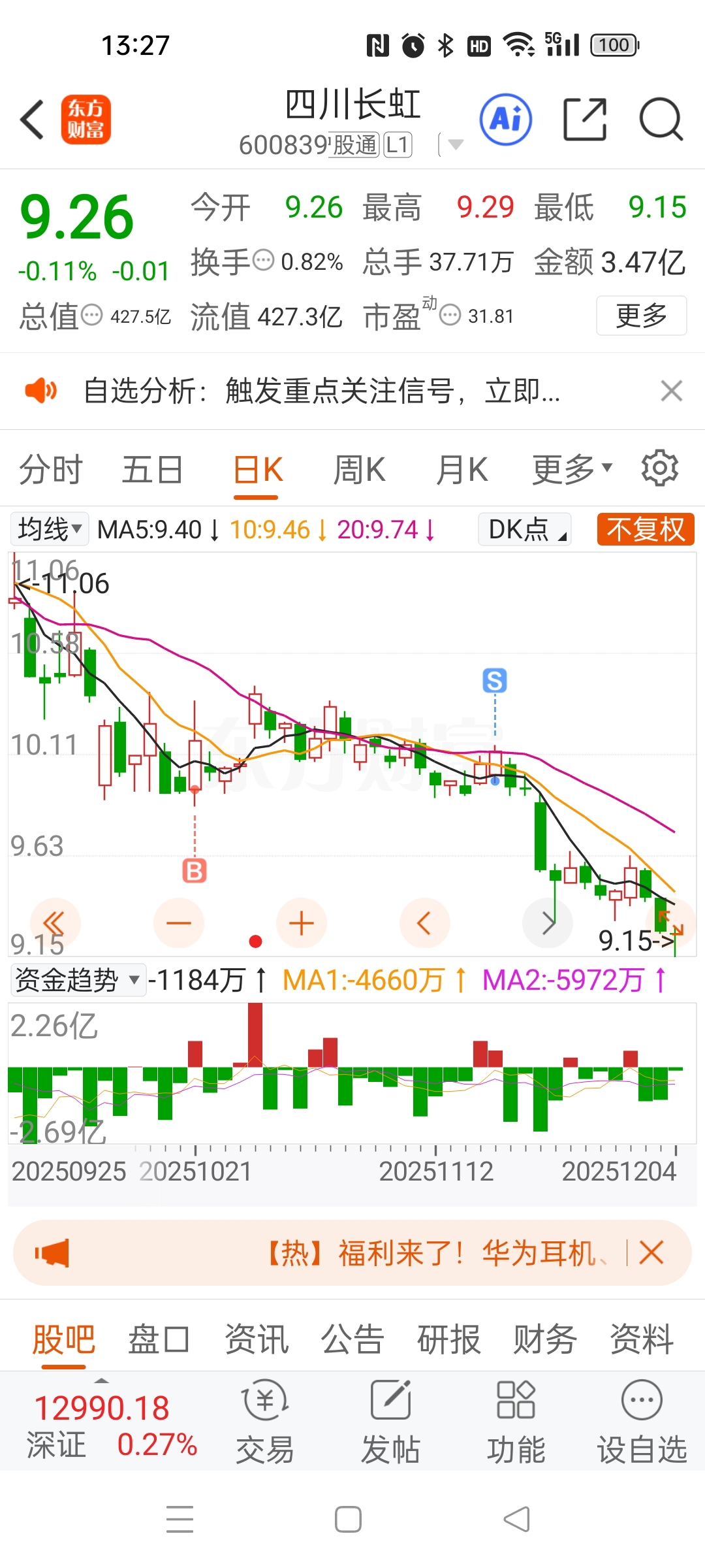 $四川长虹(SH600839)$ 也还算好卖得及时,去年10月涨太多了,他们大鱼大肉还没消化完。真不知道底在哪里?原预估9--9.2,现在到了,心里又发憷不敢跳进去。