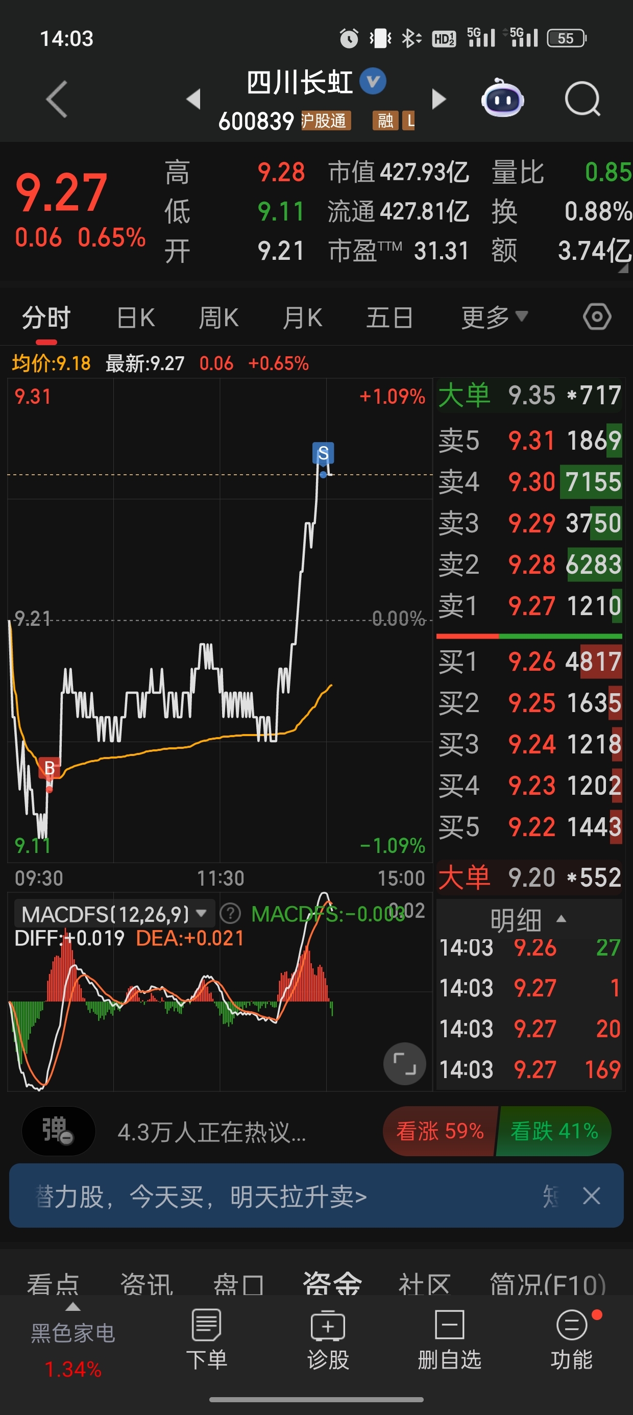$四川长虹(SH600839)$ 慢慢t吧,6成仓位不敢补了