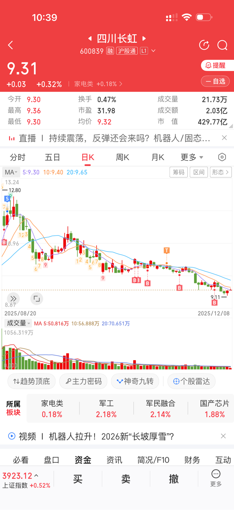 $四川长虹(SH600839)$ 亏29个点 你张5个点行吗?