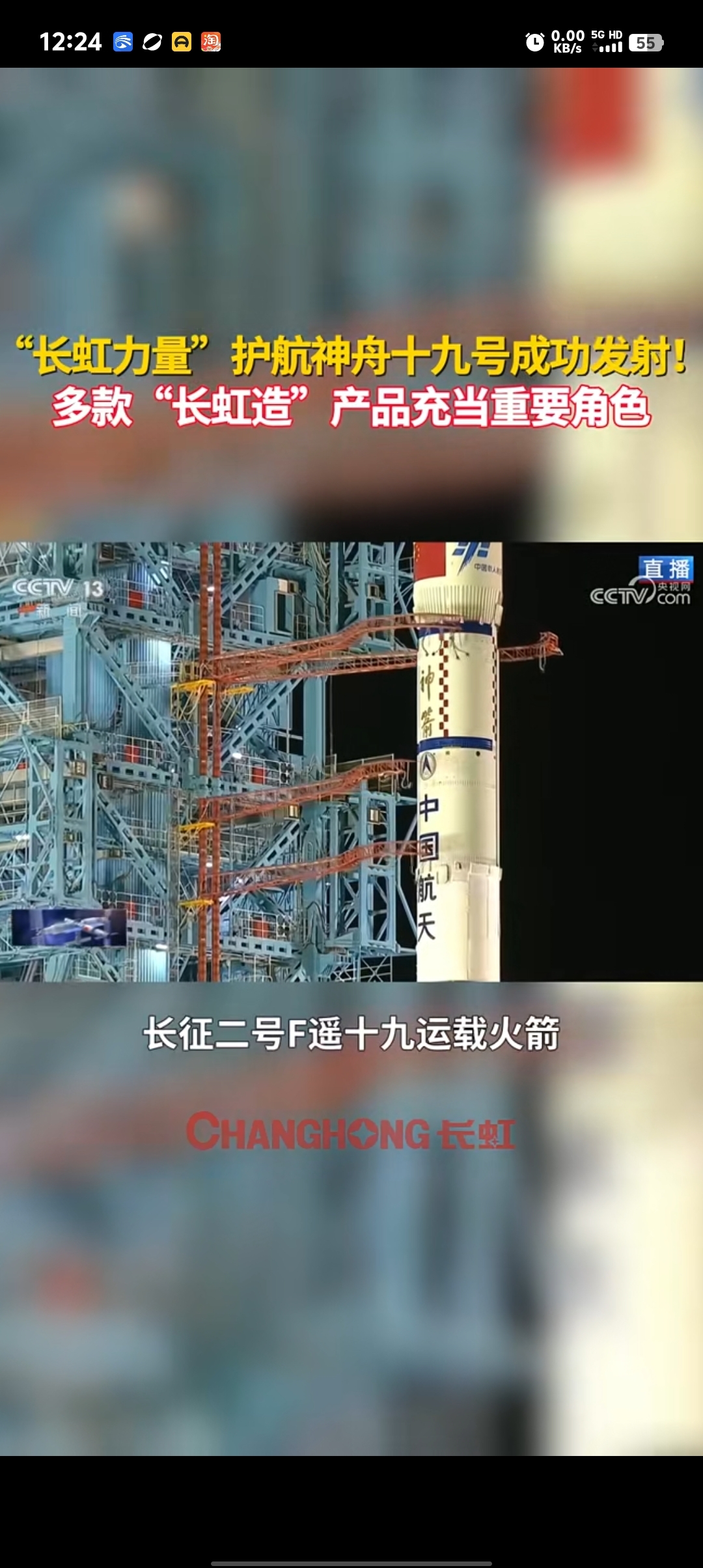 $四川长虹(SH600839)$ 四川长虹高度参与神舟飞船发射任务,商业航天