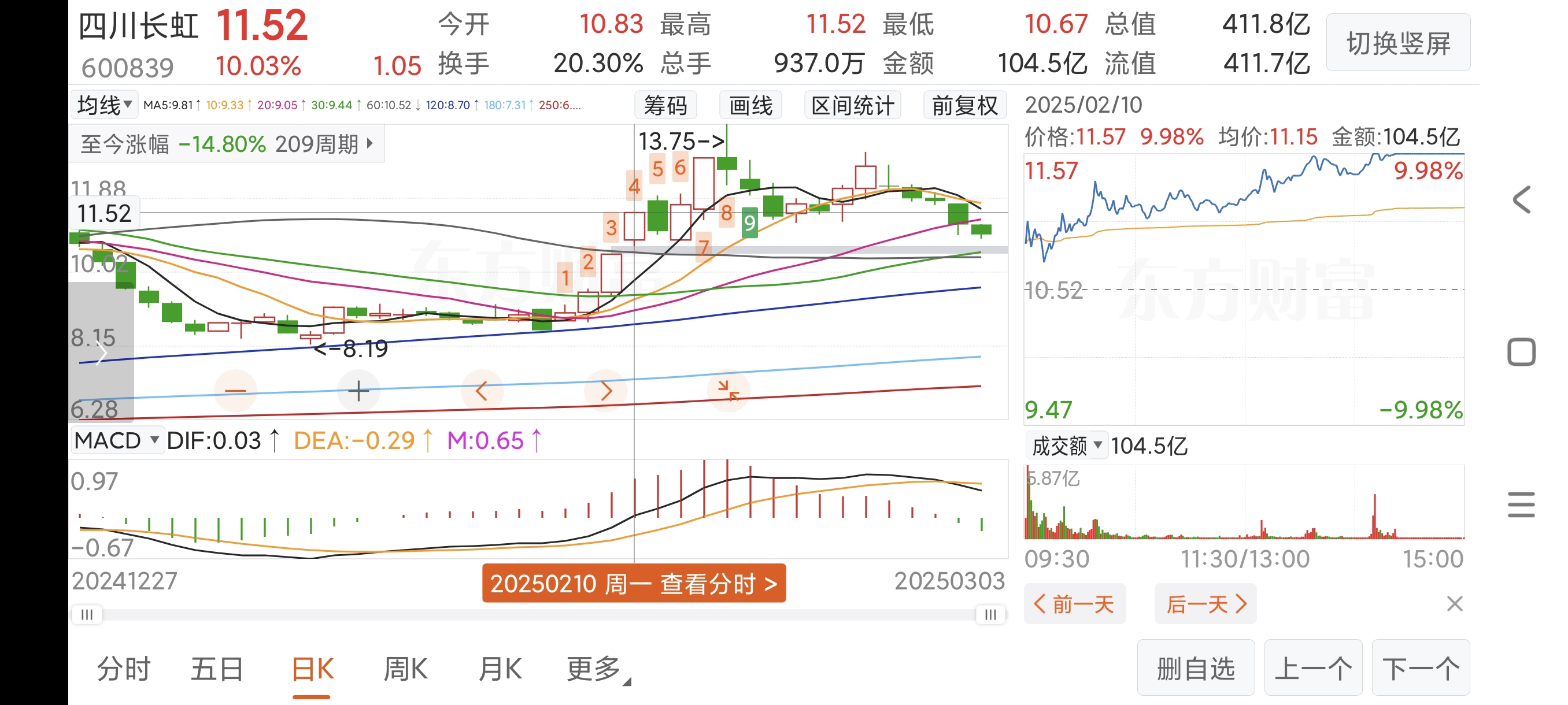 $四川长虹(SH600839)$ 光头阳线后面一个高开低走,这种走势很常见