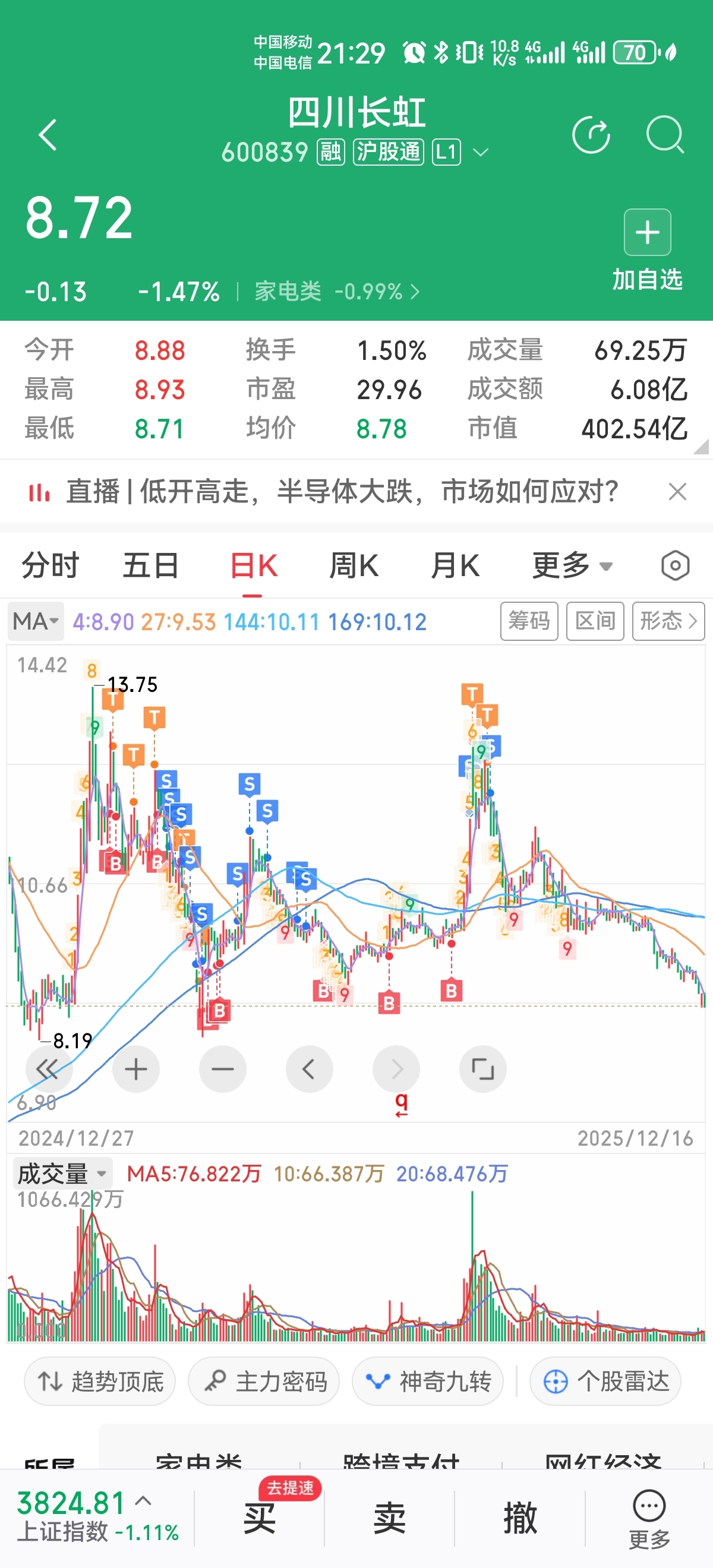 $四川长虹(SH600839)$ 是真垃圾啊,被套半年最后小亏离场小亏场,现在回头看看来是卖对了,还是那副德行,祝四川长虹股东早日回本