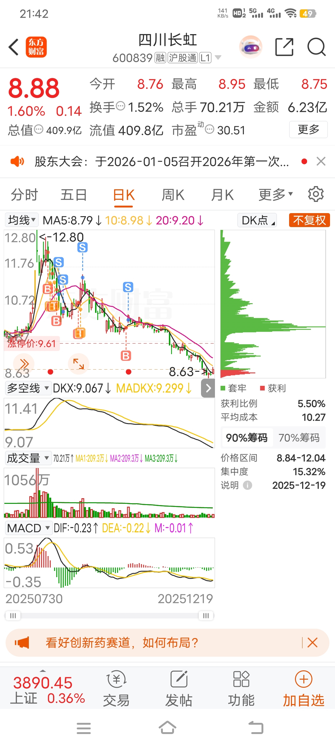 $四川长虹(SH600839)$ 幸好割肉割得快,要不然就是大亏