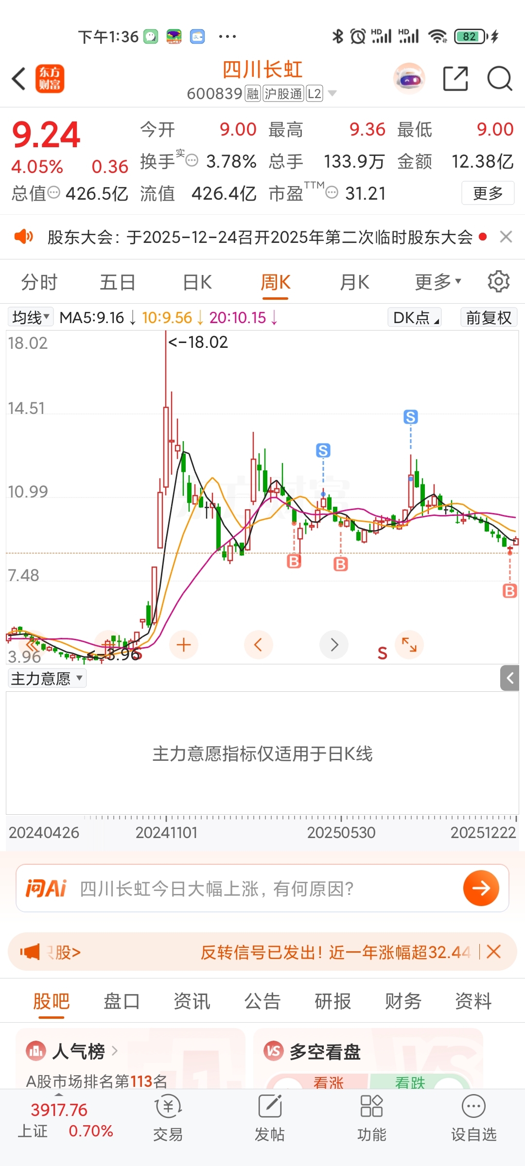$四川长虹(SH600839)$ 红红我每次都能抓到低点,感觉跟这个票很有默契