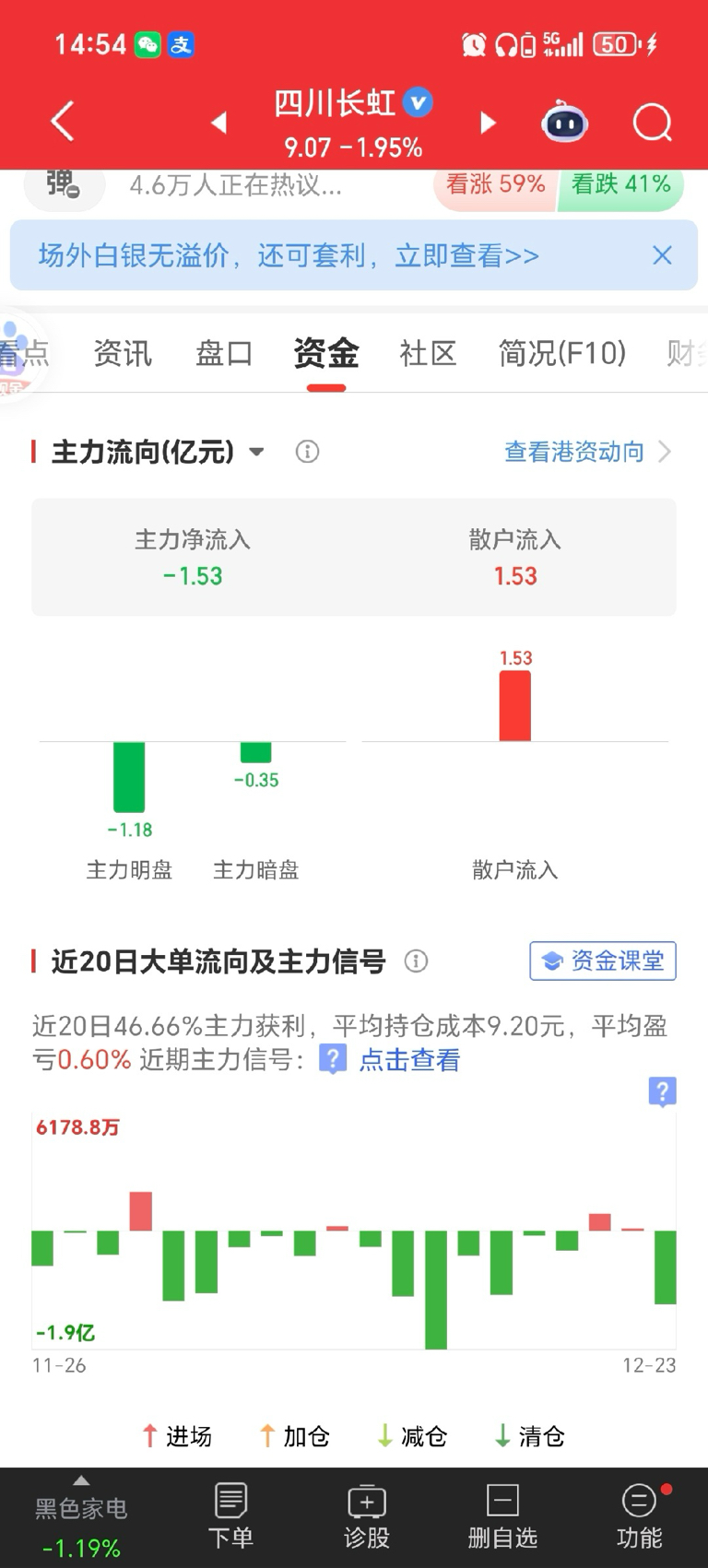 $四川长虹(SH600839)$ 还有人说不是出货,自己看,散户今天接了主力1亿的货,明天大跌是必然的