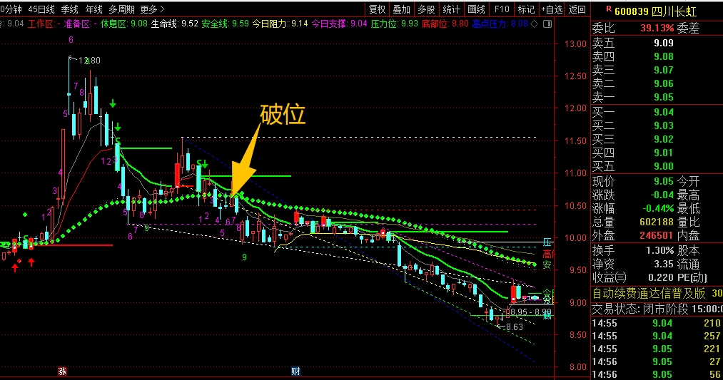 $四川长虹(SH600839)$ 中期走势偏弱了,主要是前面高位回落下来,跌破了安全线的支撑,没有能马上拉回去站稳,形成了破位趋势,这时候就要大幅减仓应对了,不然连续回落下来,就比较被动。目前来看整体趋势还是向下,暂时不考虑,同时也不要加仓。等站稳了安全线后再考虑。#炒股日记# #收盘点评#