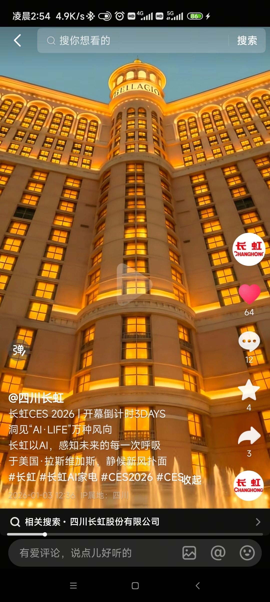 $四川长虹(SH600839)$ 四川长虹将在1月6号参加拉斯维加斯的国际消费电子展。