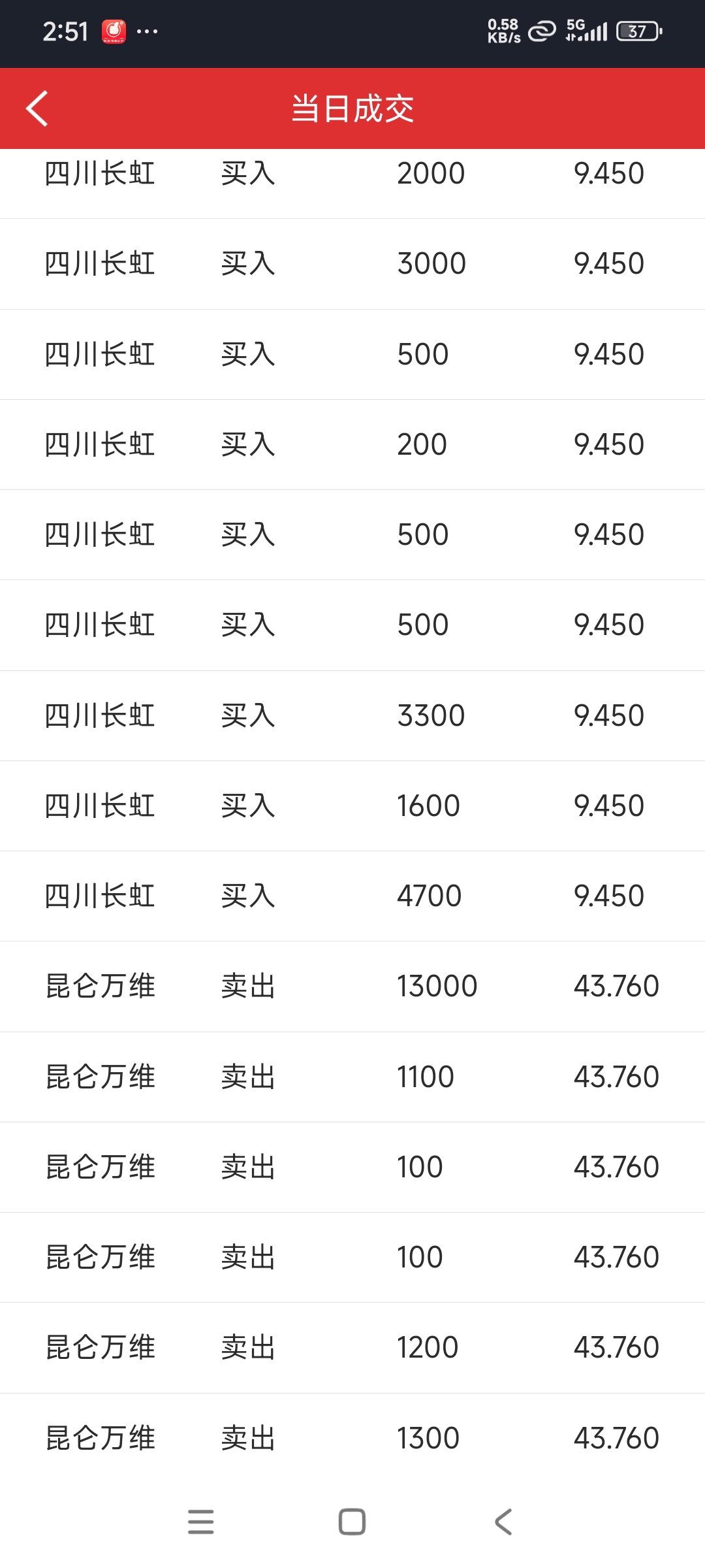 今日昆仑万大涨,现获利了结,在9.45元买入四川长虹。