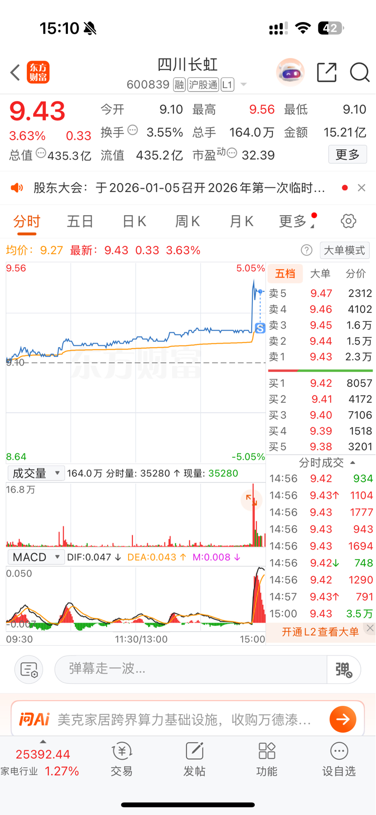 $四川长虹(SH600839)$ 其实挺看好你的 不过大盘太高了 止盈了 留下的发财