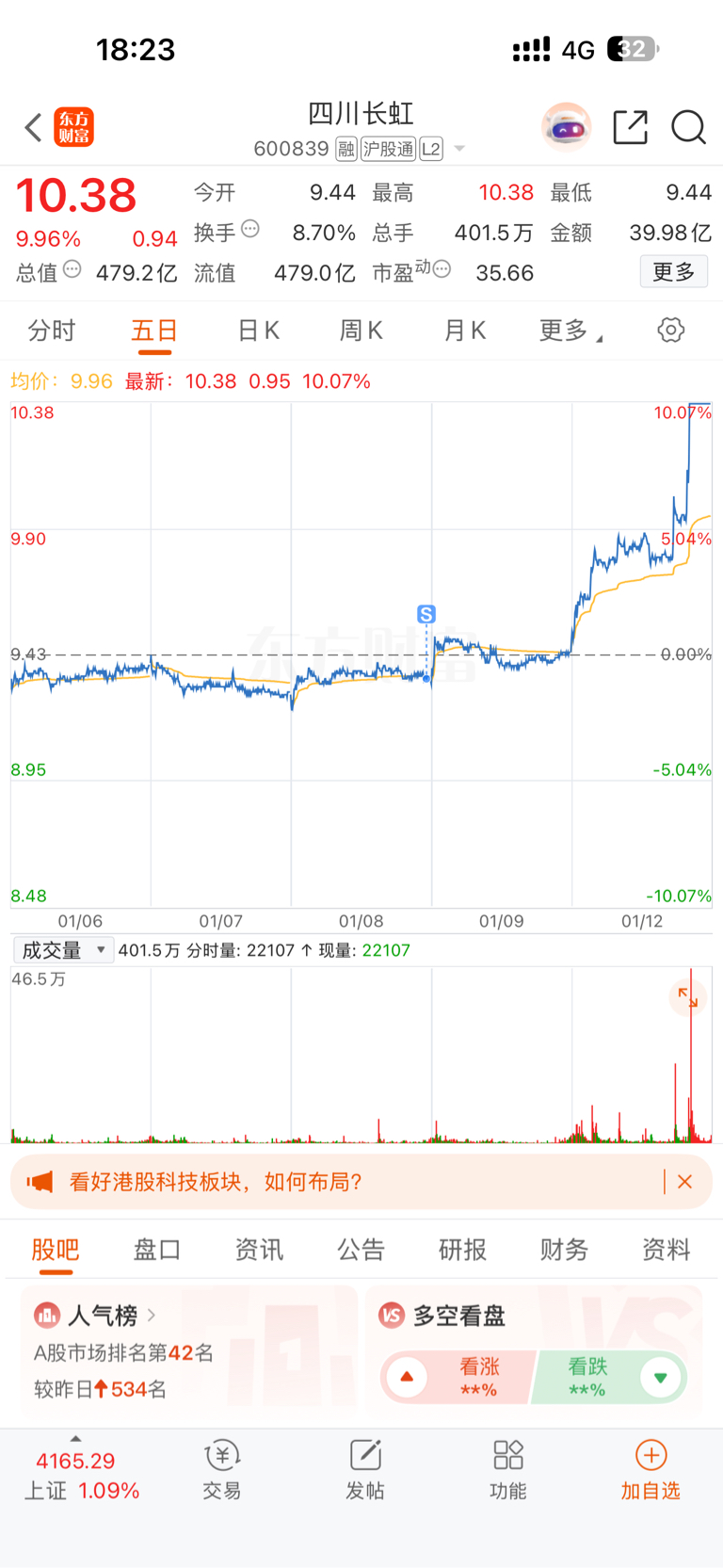 $四川长虹(SH600839)$ 沟玩意你不守武德!我不跟你说我出去赚点钱回来在养活你这出生等我回来再涨吗?你趁我不在家偷我家!