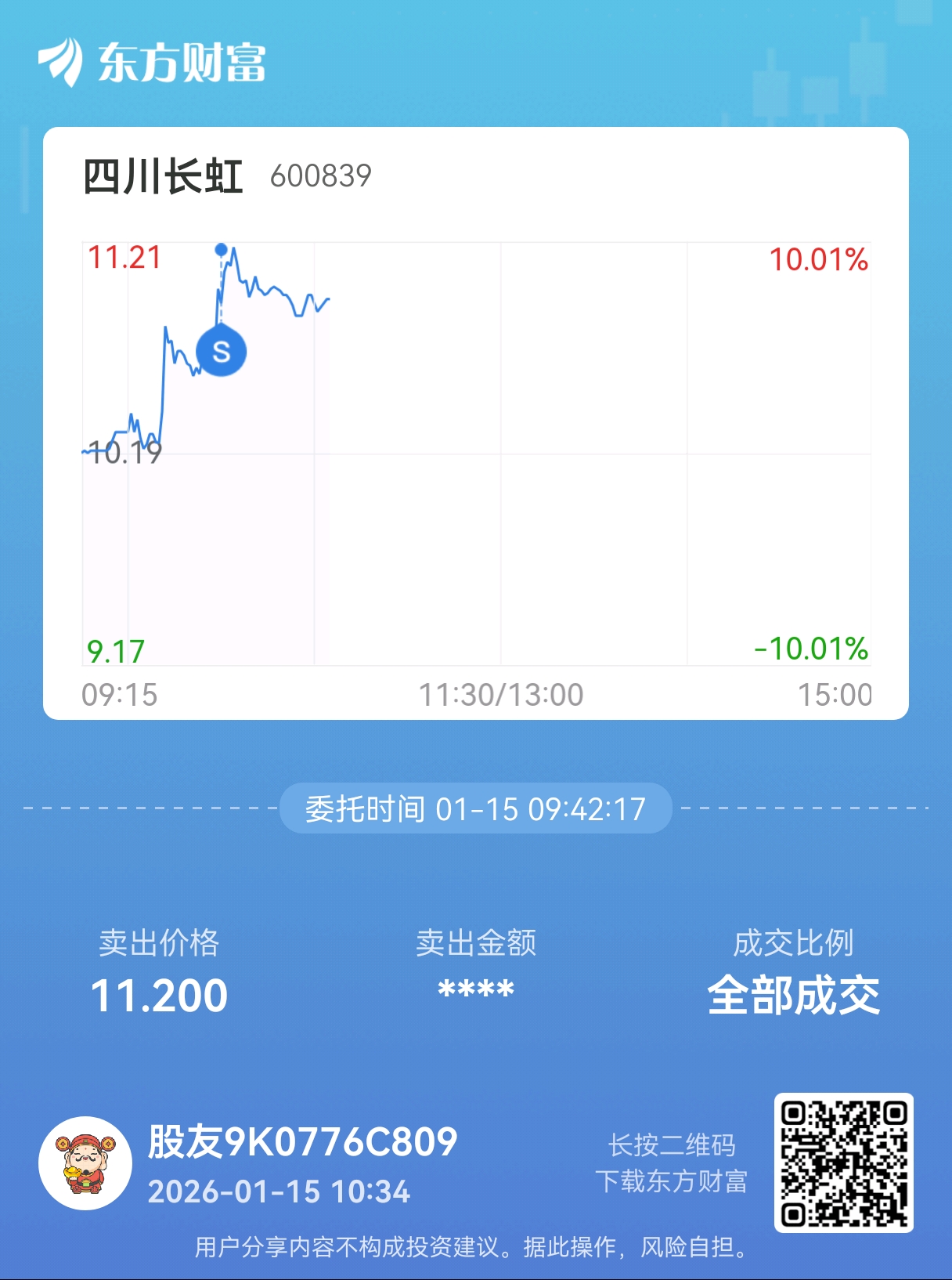 温馨提示: 1.根据《证券法》规定,禁止编造、传播虚假信息或者误导性信息,扰乱证券市场;2.用户在本社区发表的所有资料、言论等仅代表个人观点,与本网站立场无关,不对您构成任何投资建议。用户应基于自己的独立判断,自行决定证券投资并承担相应风险。《东方财富社区管理规定》