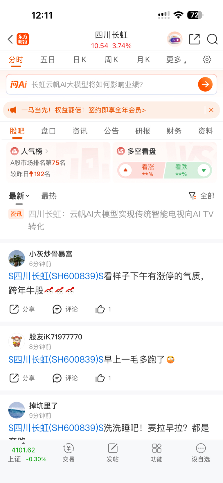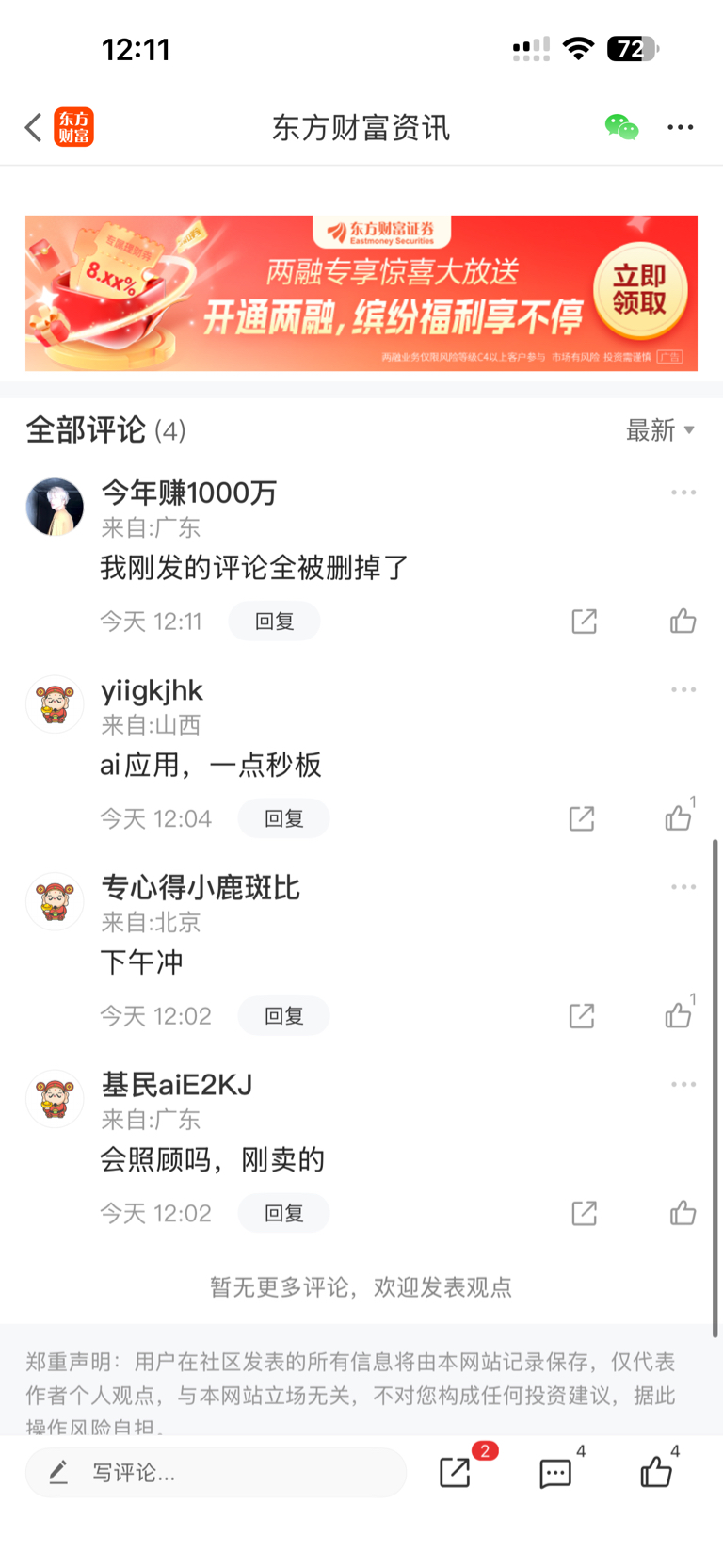 温馨提示: 1.根据《证券法》规定,禁止编造、传播虚假信息或者误导性信息,扰乱证券市场;2.用户在本社区发表的所有资料、言论等仅代表个人观点,与本网站立场无关,不对您构成任何投资建议。用户应基于自己的独立判断,自行决定证券投资并承担相应风险。《东方财富社区管理规定》
