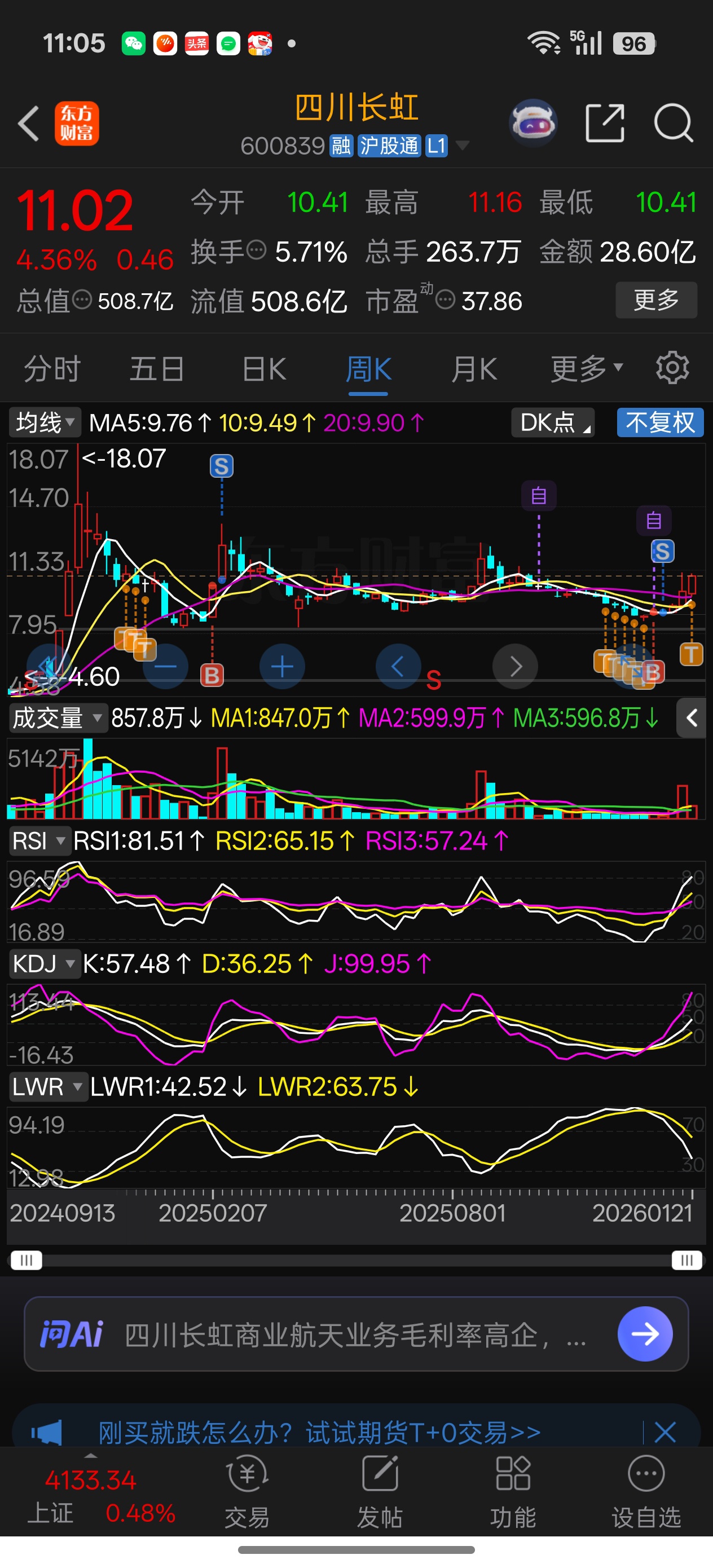 $四川长虹(SH600839)$ 买点不错,就是不会卖,吃不上肉