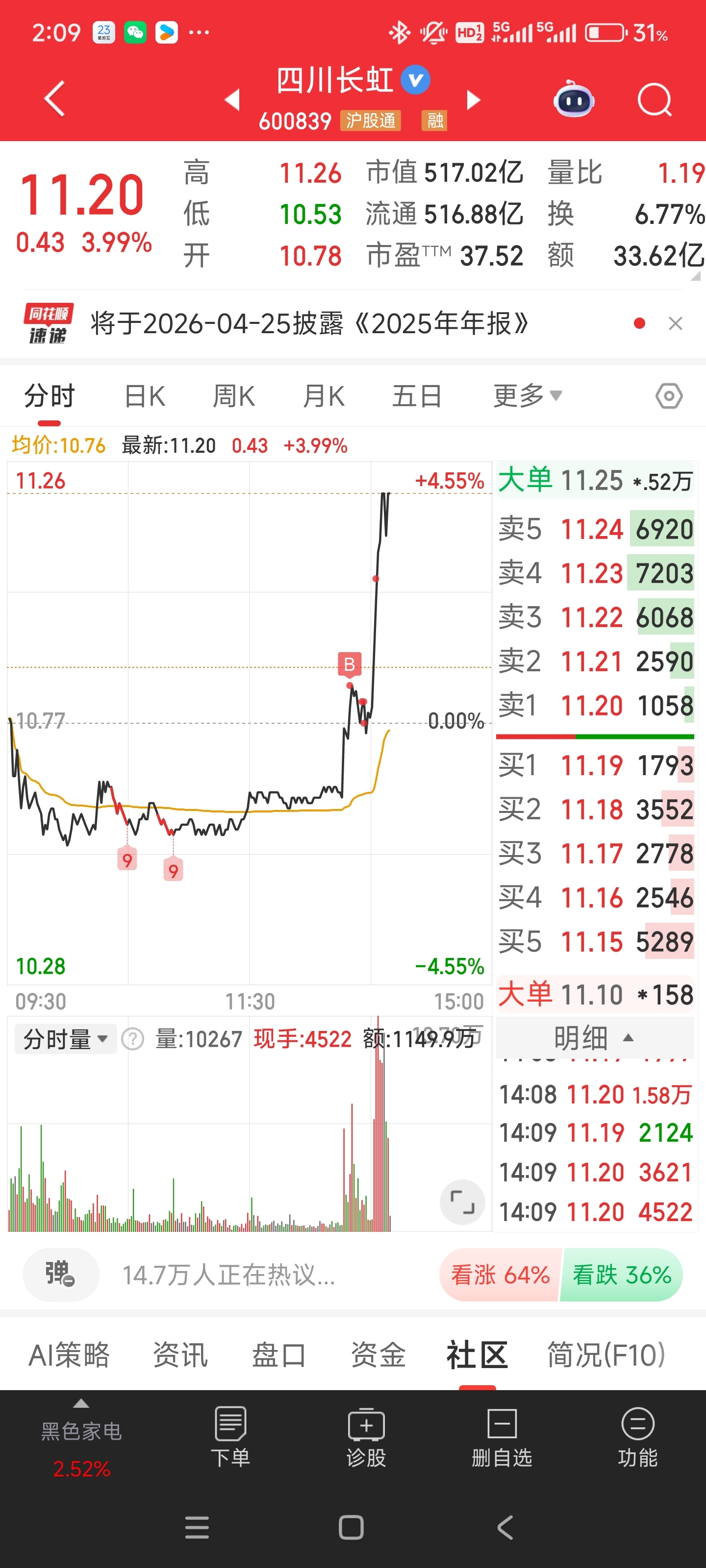 $四川长虹(SH600839)$ 我满仓了,割了消费股全部干进来了