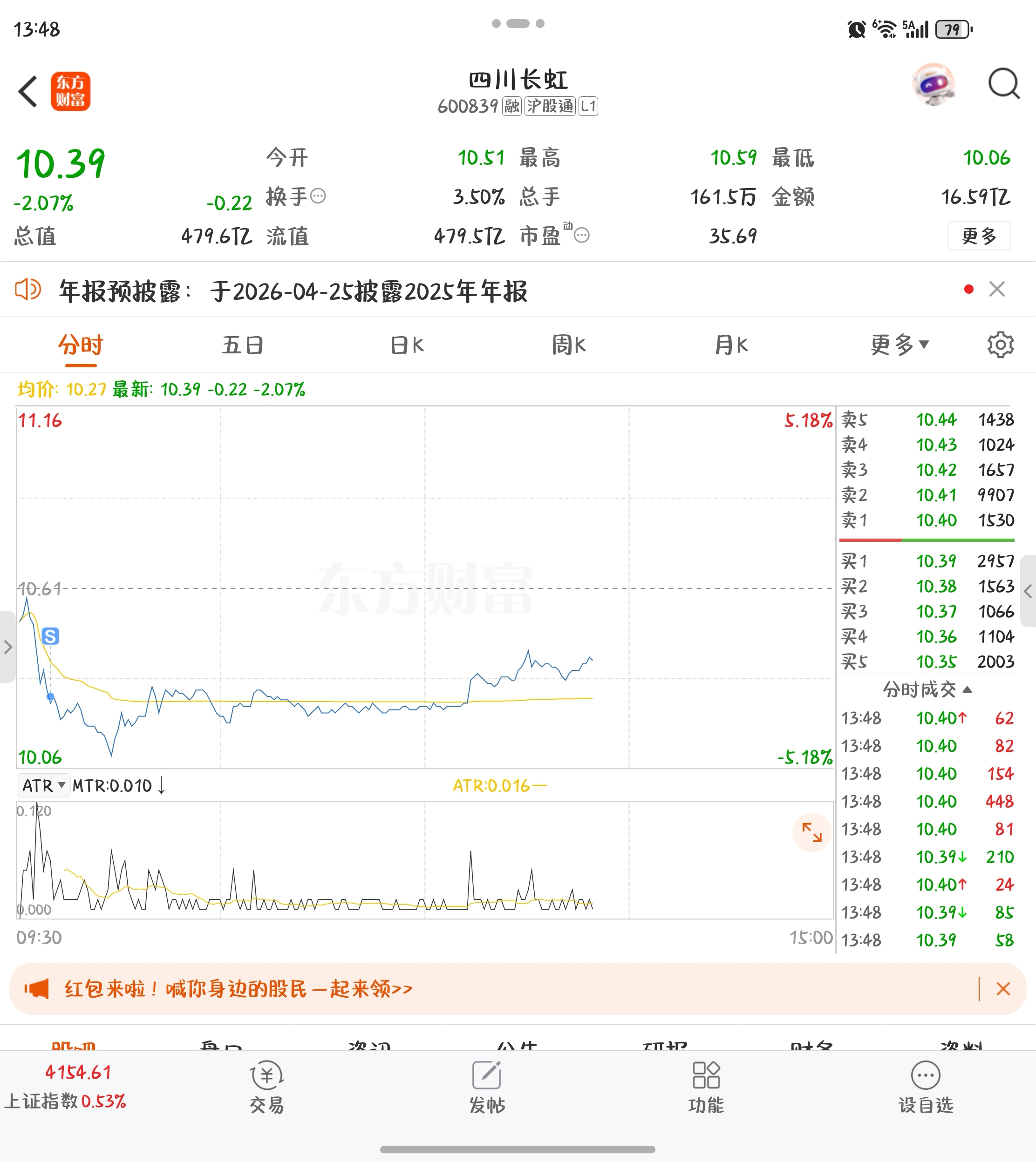 $四川长虹(SH600839)$ 昨天跌幅硬抗了,今天扛不住割了,你又起来了