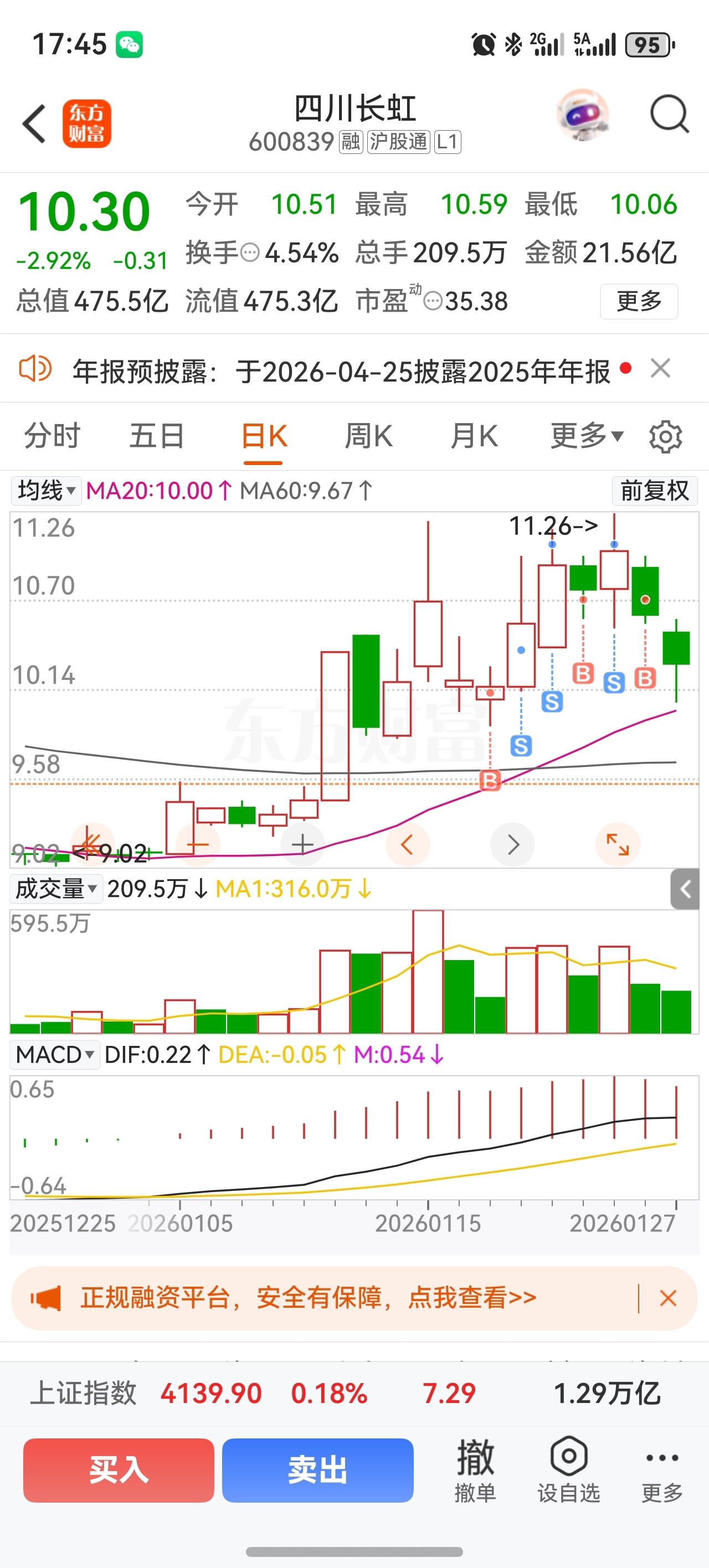 $四川长虹(SH600839)$ 挂10元,没有接到