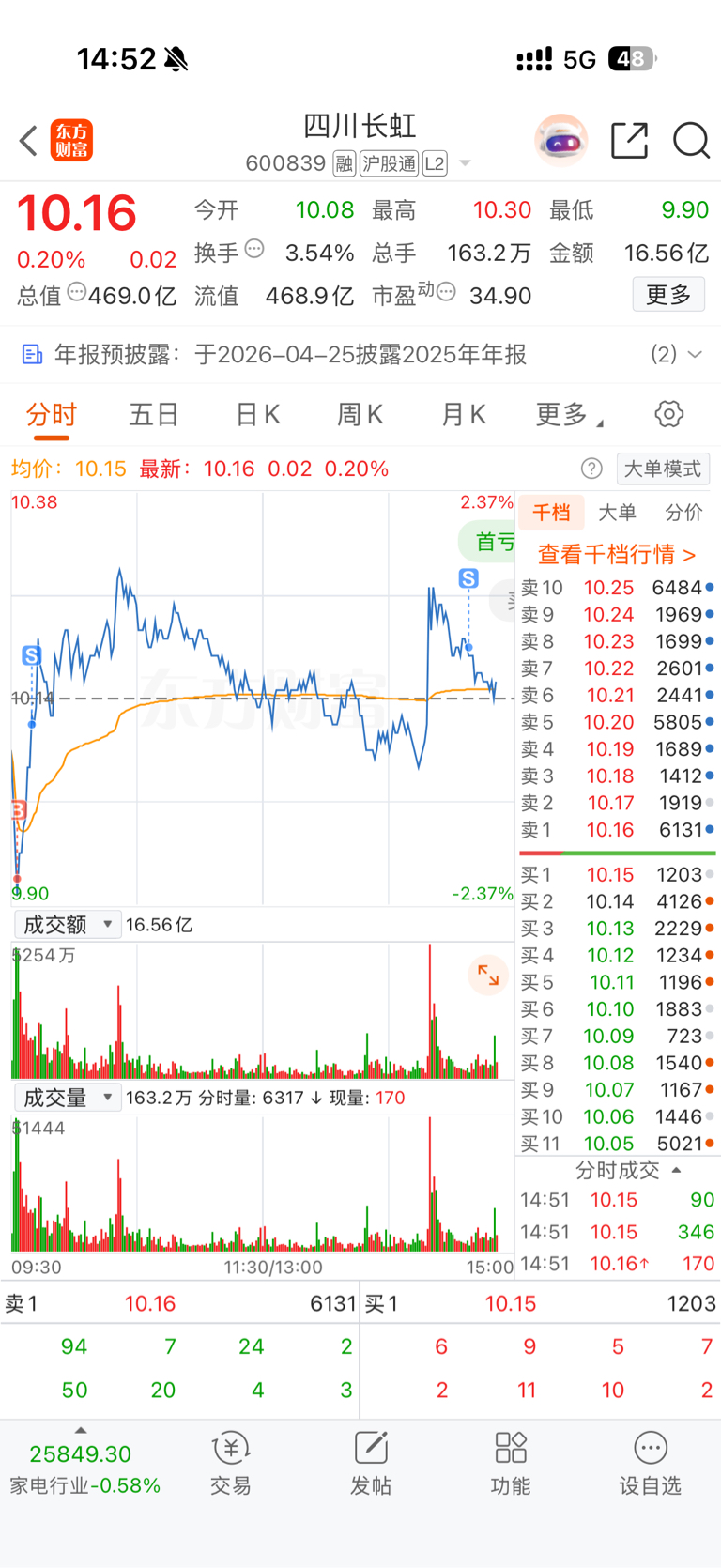 $四川长虹(SH600839)$ 我不格局了,先走了
