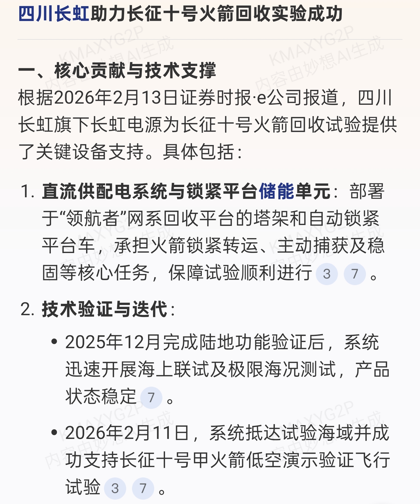 四川长虹助力长征十号火箭回收实验成功。