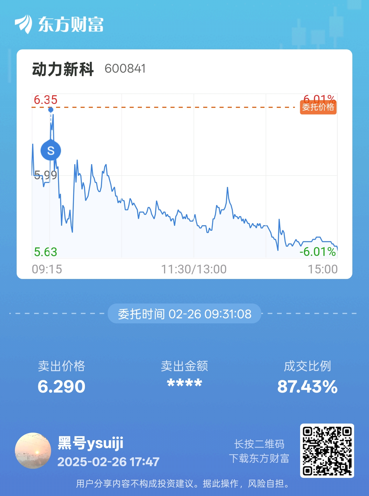 温馨提示: 1.根据《证券法》规定,禁止编造、传播虚假信息或者误导性信息,扰乱证券市场;2.用户在本社区发表的所有资料、言论等仅代表个人观点,与本网站立场无关,不对您构成任何投资建议。用户应基于自己的独立判断,自行决定证券投资并承担相应风险。《东方财富社区管理规定》