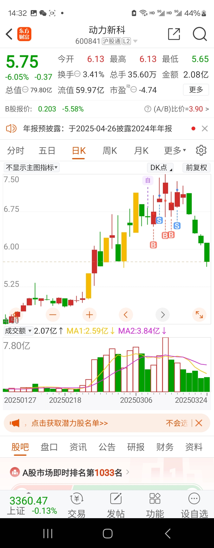$动力新科(SH600841)$ 为什么都选对股,而挣不了钱呢