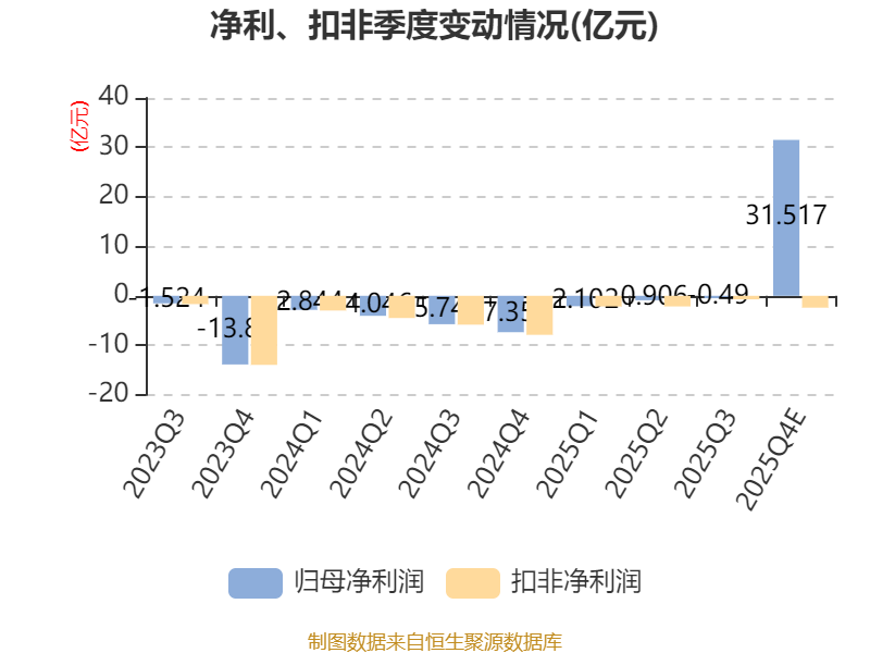 2025年,公司发动机实现销售17.83万台,同比增长22.32%,发动机业务快速增长,但因上汽红岩2025年度并表期间亏损,且股权处置收益属于非经常性损益,故公司归属于上市公司股东的扣除非经常性损益的净利润预计为-8.43亿元至-6.43亿元。