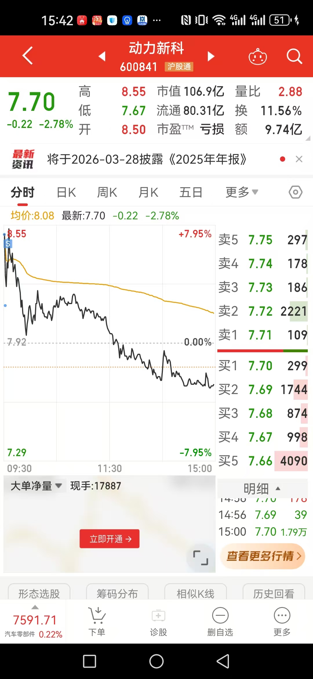 今天贪心了,集合竞价出了一半,想着能往上冲一下再出另一半,结果一开盘就下挫,只好