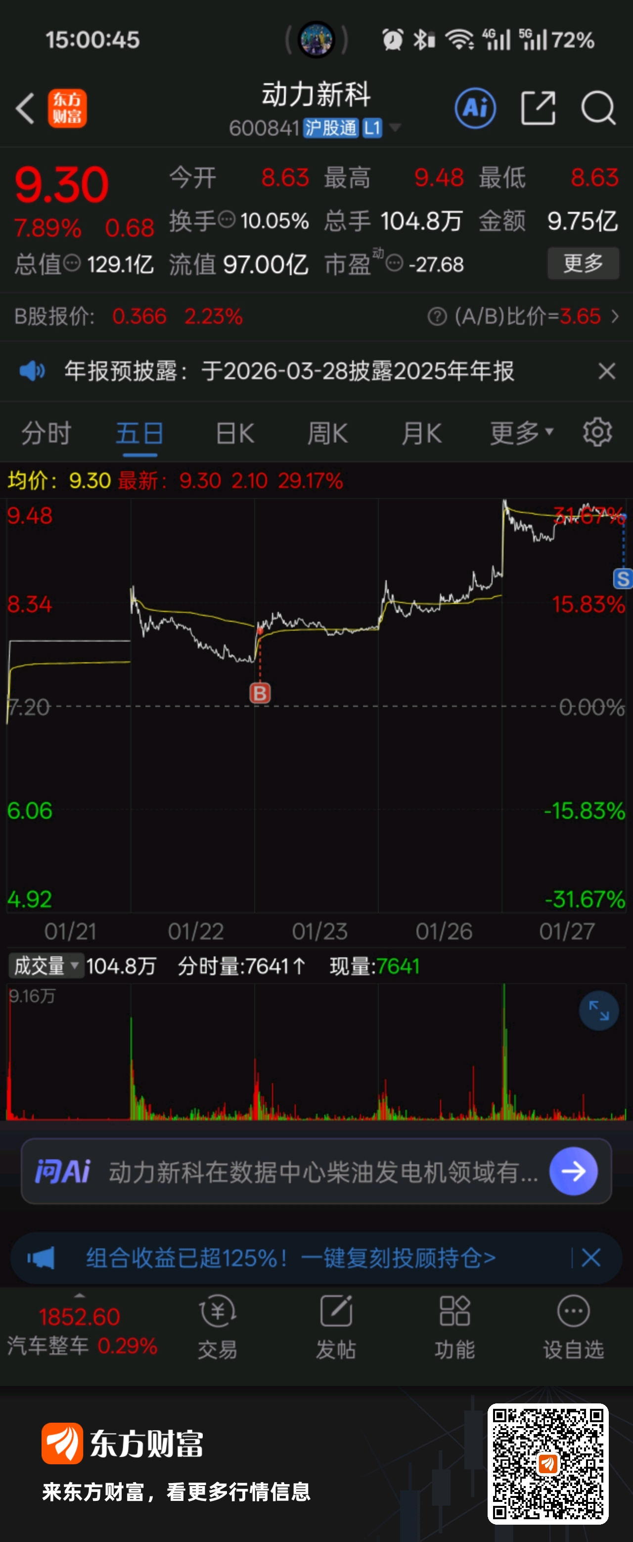 $动力新科(SH600841)$ 走了,冷门板块的票子没人关注,咬到一口就得跑,不能恋战,祝留下的兄弟们发财