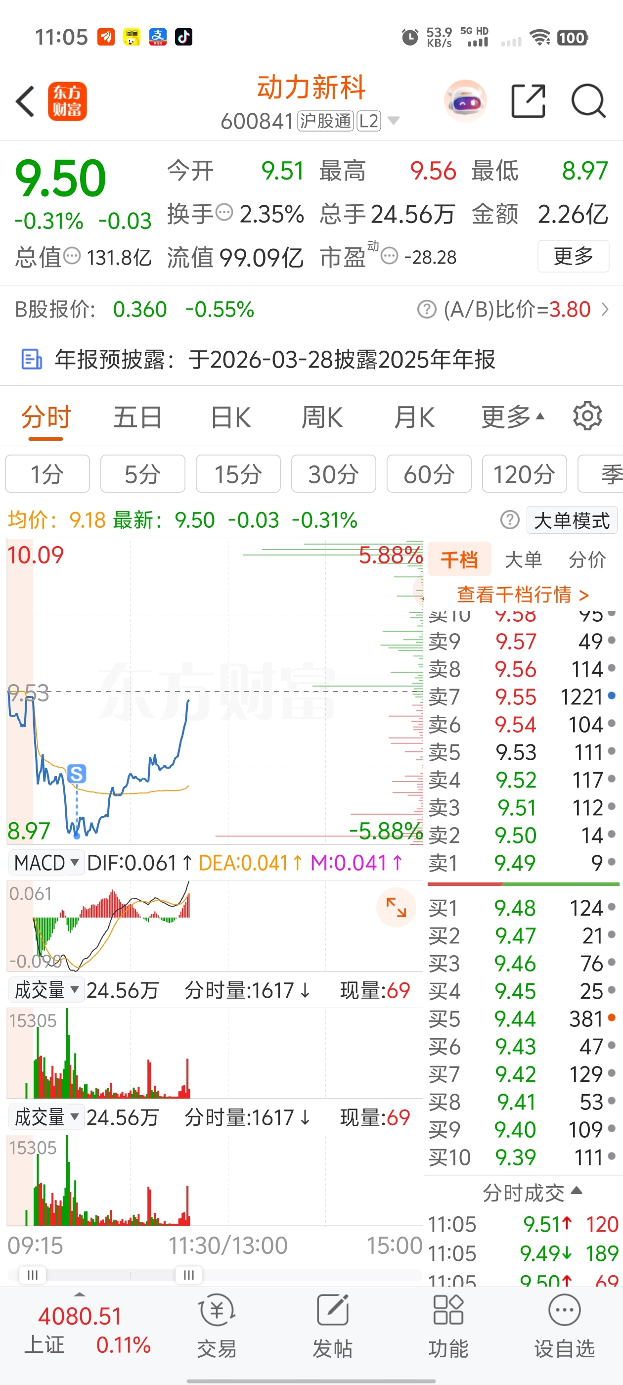 $动力新科(SH600841)$ 下周要走加速了,最少三个一字涨停,我却割在最低点,天生的韭菜啊
