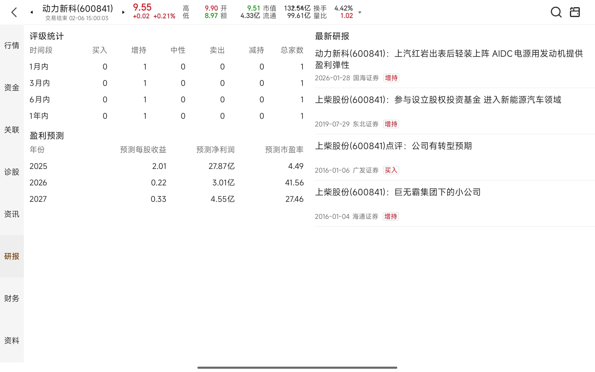 $动力新科(SH600841)$