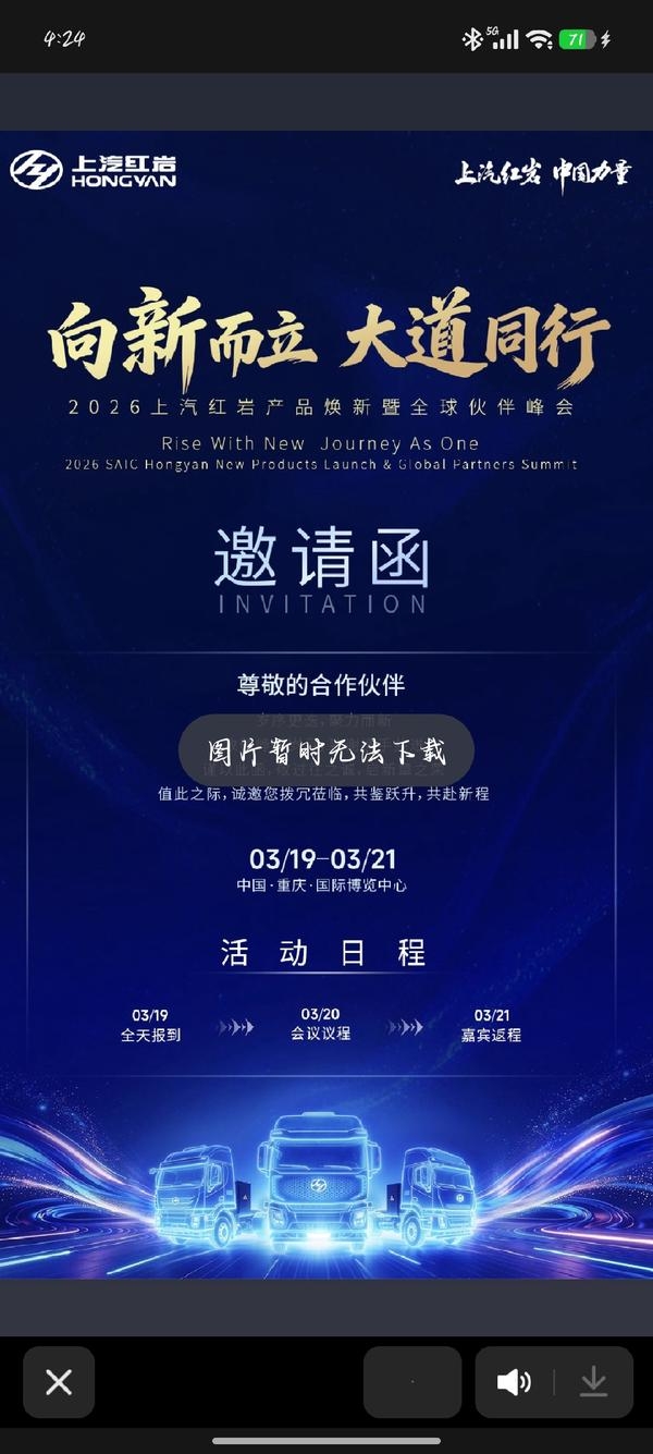 向新而立大道同行2026上汽红岩产品焕新暨全球伙伴峰会3月20日敬请期待!