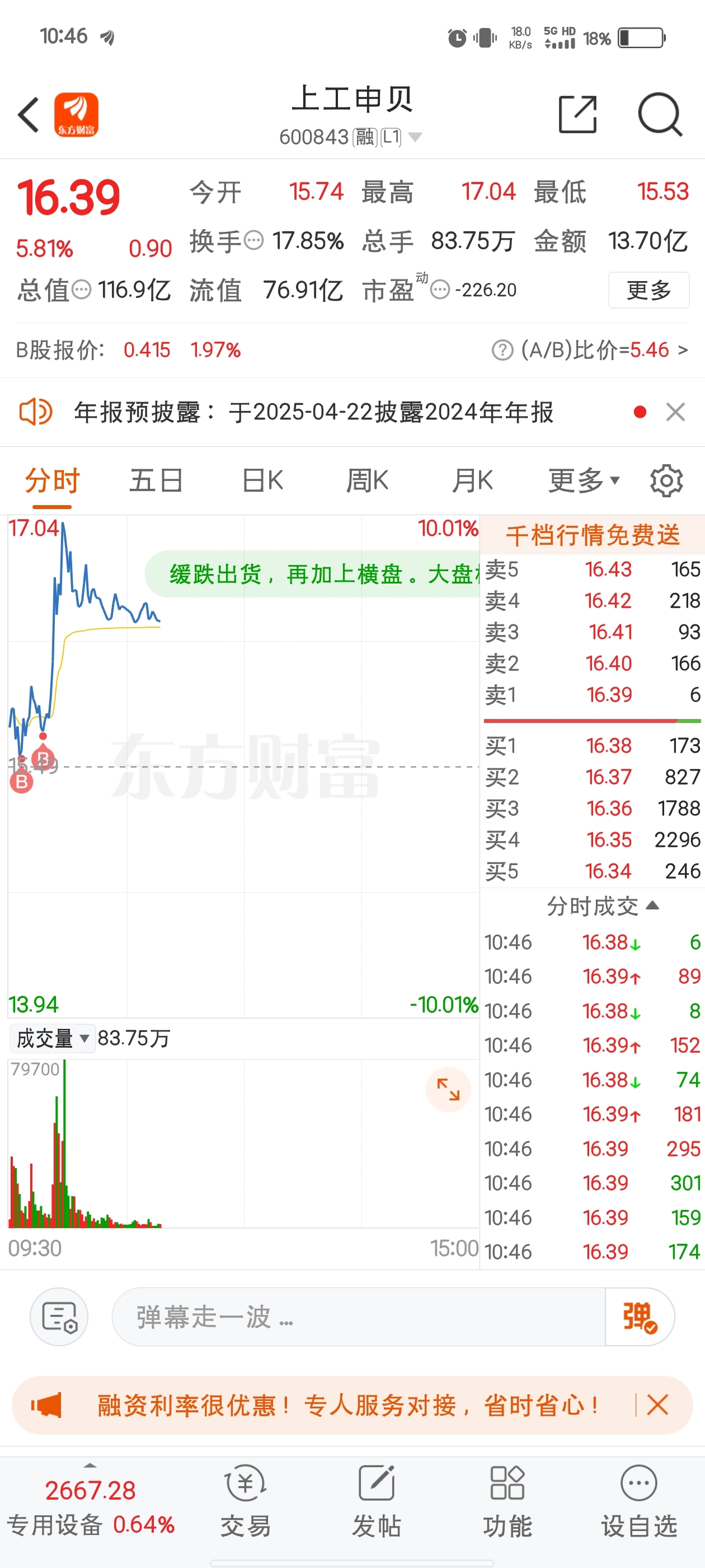 $上工申贝(SH600843)$ 我不信你还能绿了???