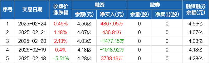 上工申贝:融资净买入4867.05万元,融资余额4.56亿元(02-24)
