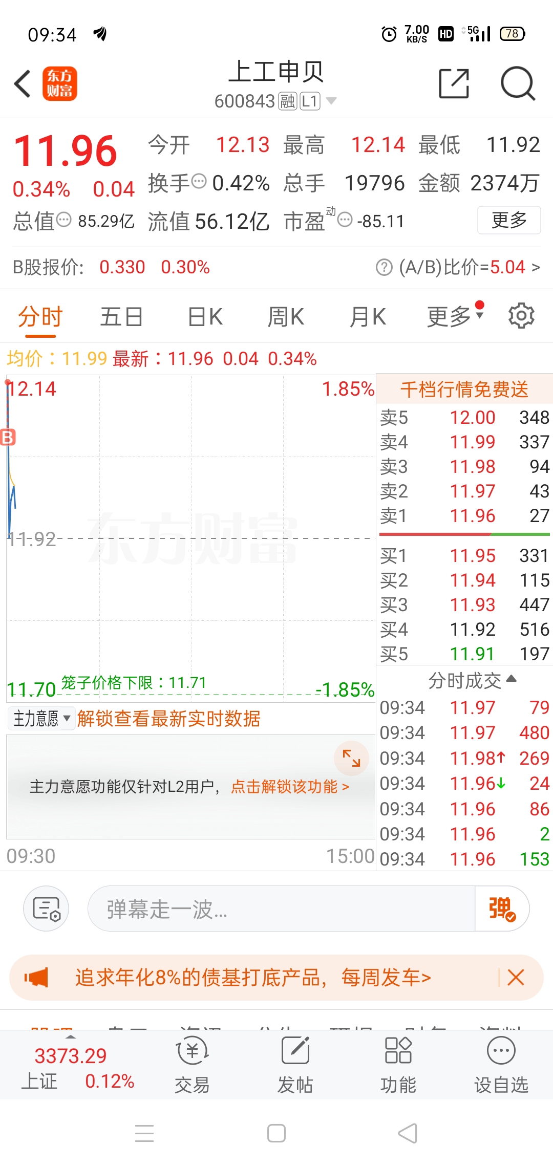 $上工申贝(SH600843)$ 开盘就买,又被套了,这水货
