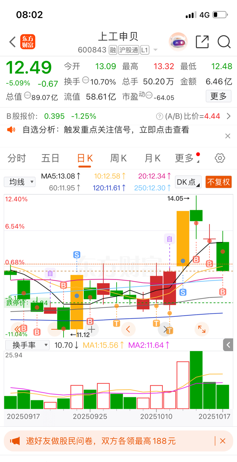 $上工申贝(SH600843)$ 对你一网情深,亏钱如何说的过去