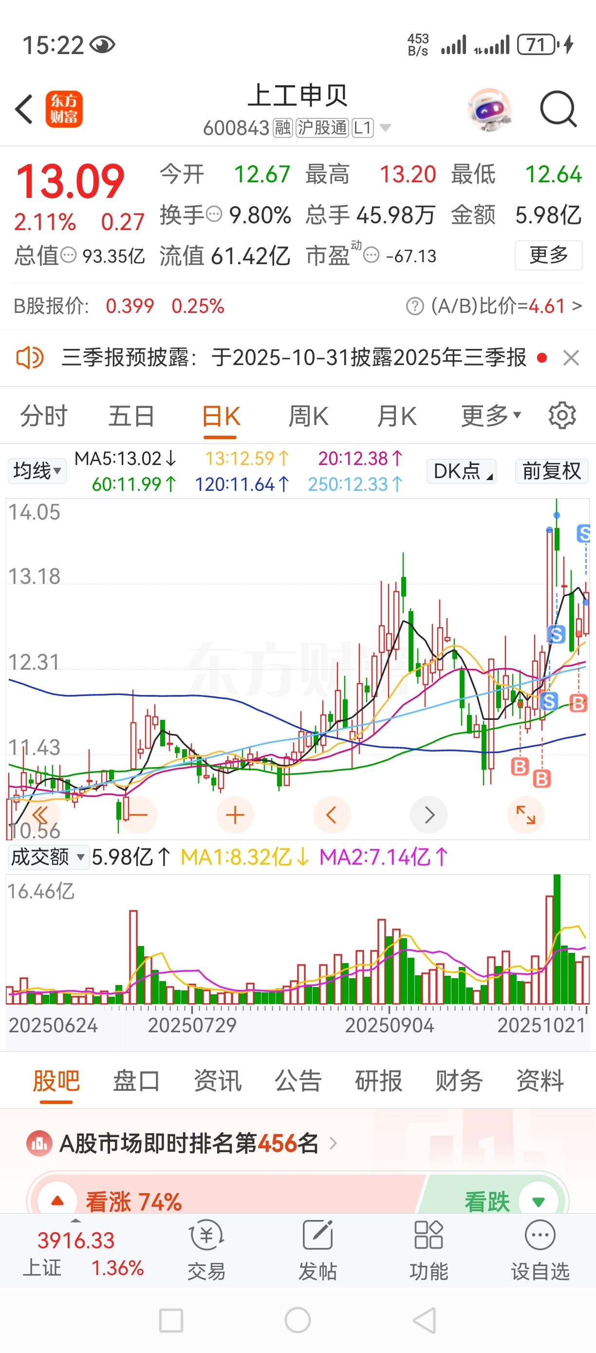 $上工申贝(SH600843)$ 走了走了,+3%个多点到手,先撤一步,等等再看…#炒股日记#