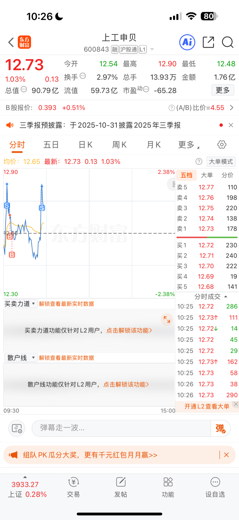 $上工申贝(SH600843)$ 今天结束,感谢主力