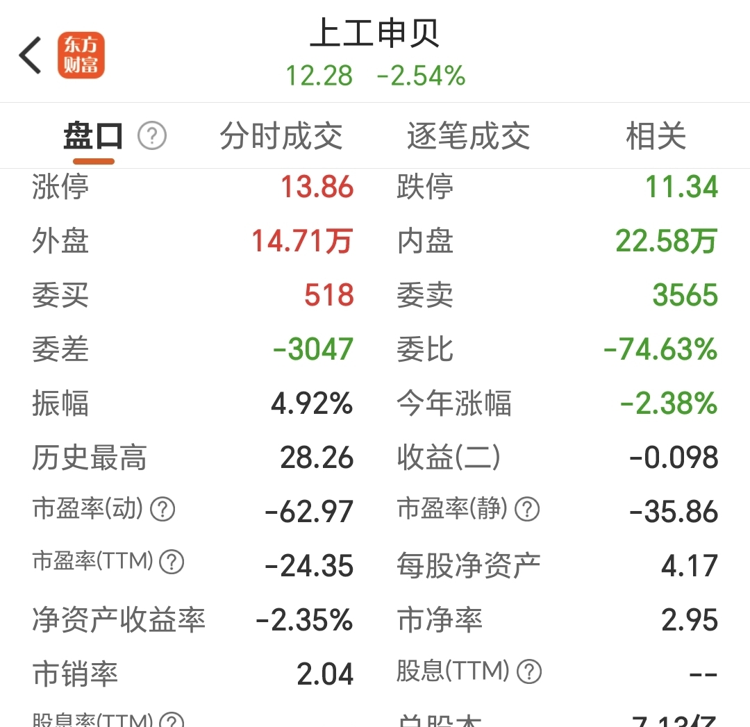 $上工申贝(SH600843)$ 一年到头不涨就算了,还绿两点多,加把劲吧
