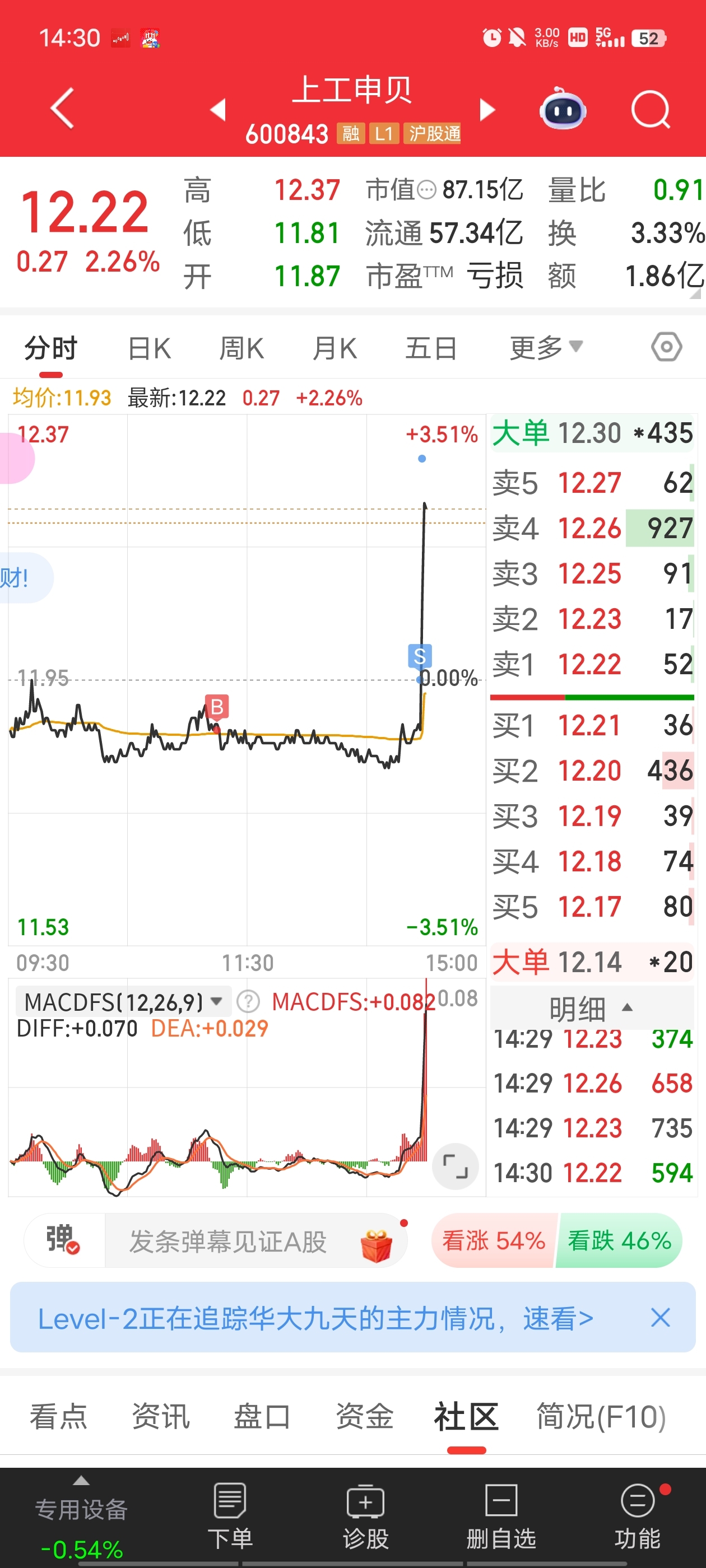 $上工申贝(SH600843)$ 终于回本了,出一半,留半仓继续格局