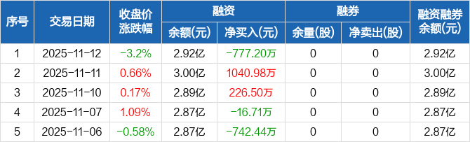上工申贝:融资净偿还777.2万元,融资余额2.92亿元(11-12)