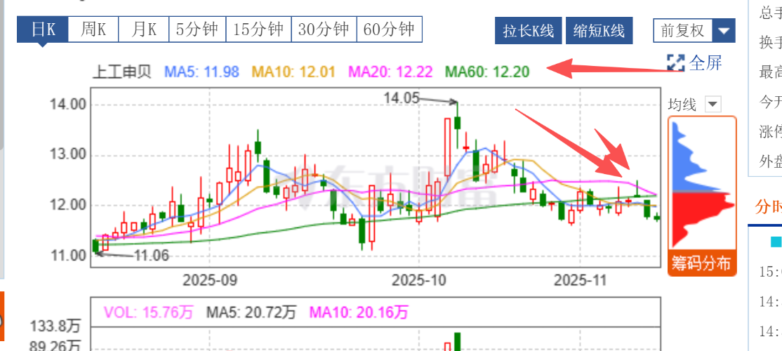 本身就站上了12.20,60天的了。大盘一跌搞去跌3%,废了,主力都跑路,韭菜没