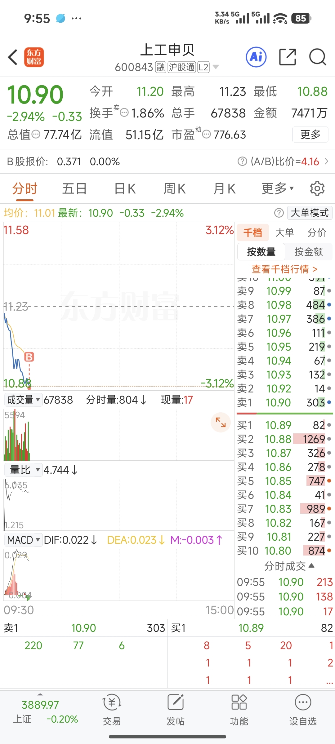 $上工申贝(SH600843)$ 进来抄底咯