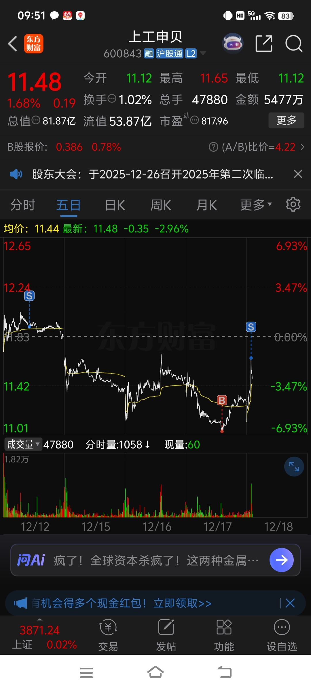 $上工申贝(SH600843)$ 必须精准拿捏他